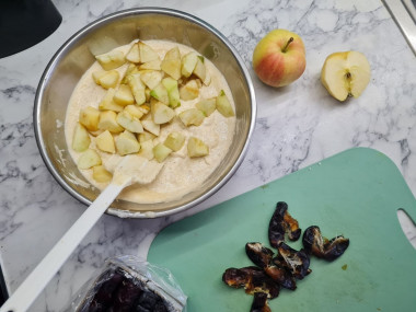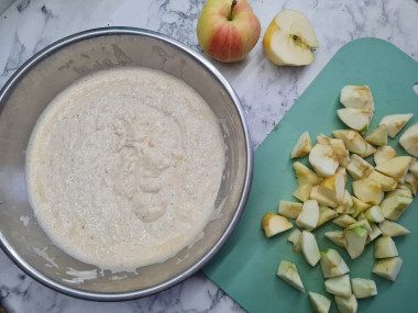 Добавьте яблоки в тесто. Перемешайте.