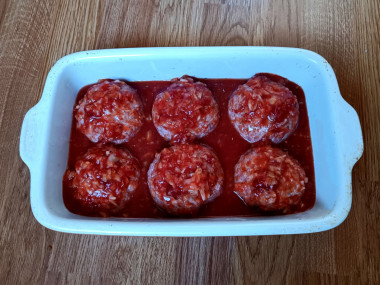 Подготовьте форму для запекания, смажьте ее небольшим количеством растительного масла. Руками сформируйте митболы размером с ладонь.