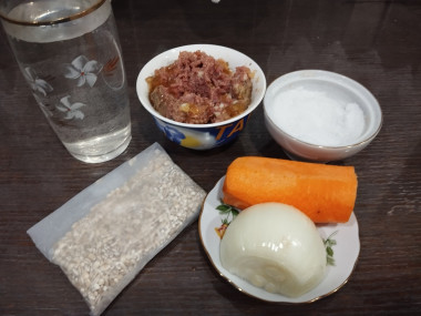 Как сделать перловая кашу с тушенкой на сковороде? Перловку насыпьте в дуршлаг и тщательно промойте под проточной водой. Правильный смыв с перловки должен стремиться к прозрачному.