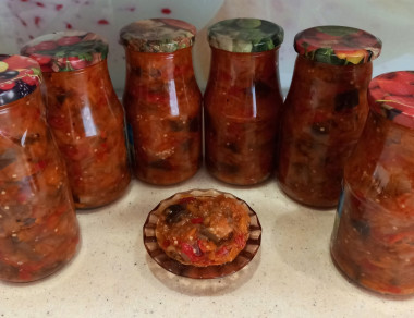 Приготовили , посмотрим зимой что будет по вкусу))) на данный момент попробовали , понравилось))добавили на 200гр больше помидор и на 300р больше баклажан , получилось 4,25 литра