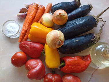 Морковку, лук и чеснок почистите, с баклажанов срежьте хвостики. Все овощи ополосните под холодной проточной водой.