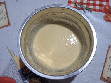 Взбитые белки вмешайте в тесто лопаткой движениями снизу вверх. Делать это нужно аккуратно, чтобы не нарушить воздушность белков.
