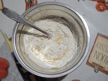 Муку соедините с разрыхлителем, корицей, мускатным орехом, гвоздикой, имбирем и просейте. Гвоздику я предварительно измельчила в ступке. По желанию специи можно исключить.
