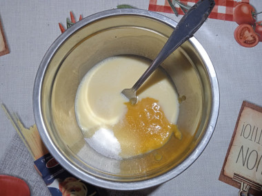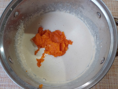 В пюреобразную тыквенную массу добавьте растительное масло, перемешайте.