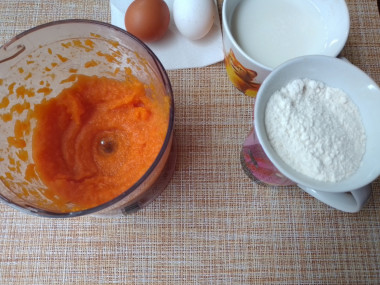 Очищенную тыкву запеките до мягкости в разогретой до 180 градусов духовке 20-25 минут. Нам необходимо 200 грамм тыквенного пюре, свежей тыквы я взяла немного больше. Для приготовления тыквы можно использовать и микроволновку (время и мощность подбирайте с учетом особенностей вашего прибора, см.инструкцию к вашей микроволновке).