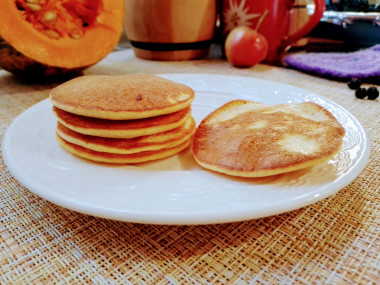 Нежные, ароматные, вкусные - на завтрак для всей семьи. Тыквенные панкейки по виду почти неотличимы от классических, без тыквы. Но выпекаются они точно так же, на сухой сковороде без капли масла. Получаются сухие, мягкие круглые блинчики красивого оранжевого цвета, который поднимет настроение!