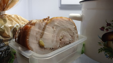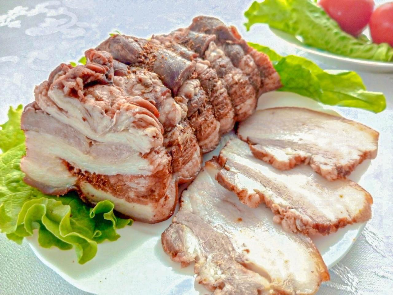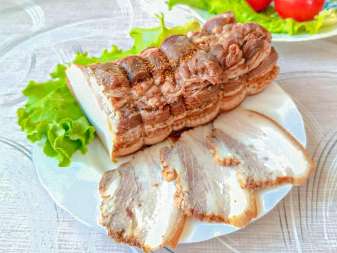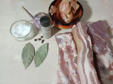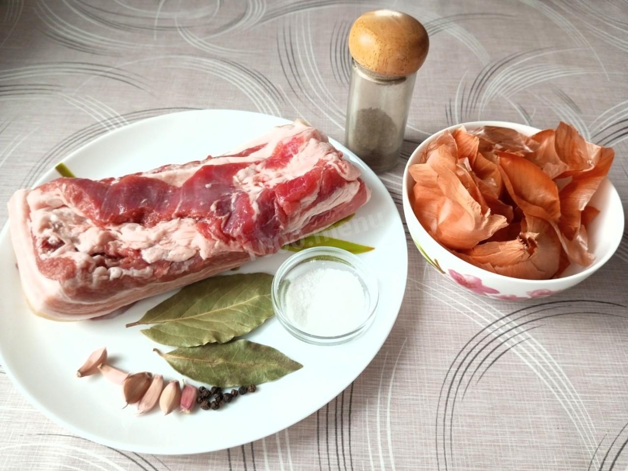 Как сделать подчеревок вареный в луковой шелухе? Подготовьте все необходимые ингредиенты. Подчеревок (пузанина) - это часть свиной грудинки, из нее обычно готовят рулеты, солят, коптят, т.е. делают продукты, являющиеся отличной альтернативой магазинным колбасам.