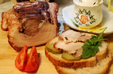 Приготовила подчеревок варёный в луковой шелухе. Это отличная альтернатива магазинным колбасным изделиям. Количество приправ и специй можно изменять и каждый раз будет получаться новый вкус. Сегодня я не добавляла чеснок, подавала подчеревок с домашней горчицей, зелёным луком и отрубным хлебом. Ну очень вкусно! Спасибо за рецепт, naniki!