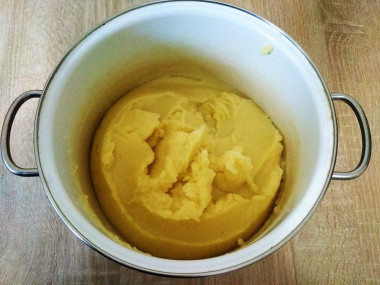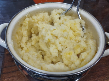 Готовое картофельное пюре не очень густое и не жидкое. Консистенцию регулируйте по своему вкусу добавлением молока.