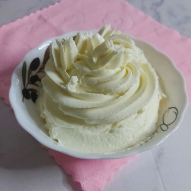 Выбрала этот вариант крема для украшения кексов, показалось, что будет легким, так и есть, но он получился кисловатым, что как мне показалось, испортило вкус.