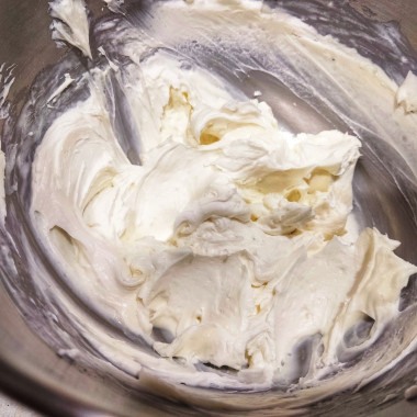 Если сливки были взбиты до нужной стадии, то после добавления сыра, крем станет еще гуще. Если же крем с сыром стал жидкий, то это означает, что или сливки были недостаточно взбиты, или сыр плохого качества.