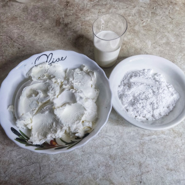 Как сделать крем из сливок, сахарной пудры, творожного сыра? Подготовьте ингредиенты. Сыр должен быть творожный сливочный, без различных добавок. Сливки берите жирностью не менее 33%. Сливки меньшей жирности не взобьются, а останутся жидкими и крем из них не получится. Сыр заранее достаньте из холодильника, чтобы он стал комнатной температуры.В мягком виде он быстрее и равномернее вмешается в крем. А сливки, наоборот, должны быть охлаждены до 3-4 градусов.