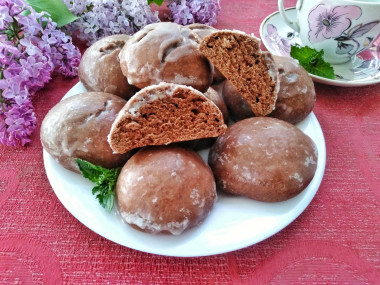 Очень захотелось испечь ребёнку пряников, нашла на любимом сайте интересный рецепт. Пряники шоколадные домашние очень заинтересовали тестом с шоколадом. Но решила готовить с глазурью вместо сахарной пудры. Приготовила гладкое и эластичное тесто, убрала в морозилку ненадолго, как пишет автор. Сформировала шарики диаметром 5 см и выпекала сначала 10 минут при 180 С, но проверив зубочисткой тесто было ещё сырое. Готовила ещё 5 минут. В итоге, за 18 минут пряники хорошо пропеклись, не подгорели, но и не пересушились. Остывшие пряники я покрыла лимонно-сахарной глазурью (на сок половины лимона 7 ст.л.сахара).