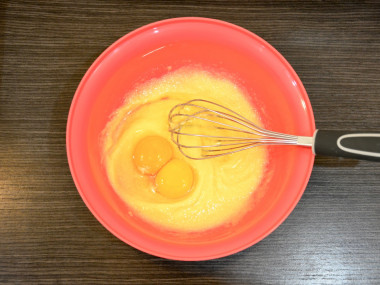 3. Разбейте в отдельную емкость яйца, смешайте их с маслом и сахаром.