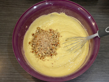 6. Грецкие орехи порубите, положите их в тесто (оставьте немного для украшения готовых капкейков) и размешайте, нужно, чтобы орешки распределились в тесте равномерно.