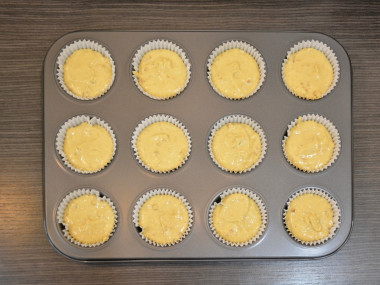 7. В силиконовую форму для капкейков положите бумажные формы, которые заполните на 2/3 тестом.