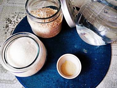 Я, чтобы его попробовать, взяла немного перемолотых в блендере овсяных хлопьев (50 г), 150 г воды, немного дрожжей (на кончике столовой ложки).