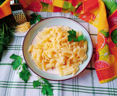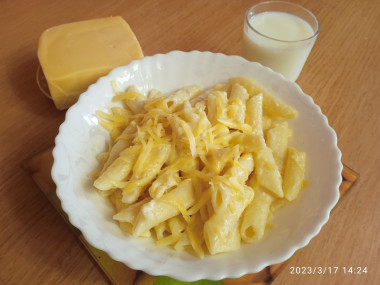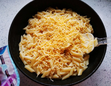 Макароны с молоком и сыром на сковороде