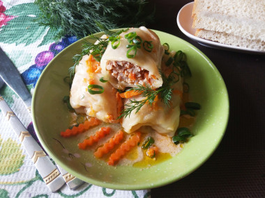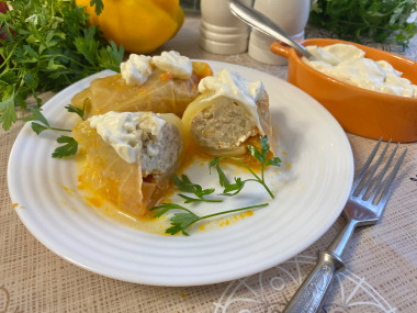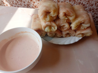 И наконец все было готово. Муж сделал домашний майонез и сели мы ужинать. Я раньше ела голубцы, но, без ложной скромности, эти получились самыми вкусными. Нежная, не переваренная капуста, сочный фарш и насыщенный соус, все это делает блюдо просто восхитительным.