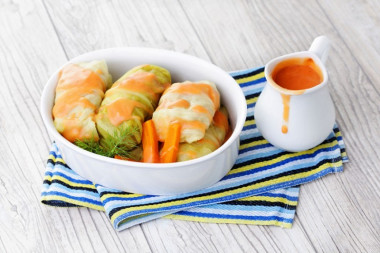 Для соуса сделала зажарку из лука и моркови, потом пробила это все блендером, добавила томат пасту и протушила.