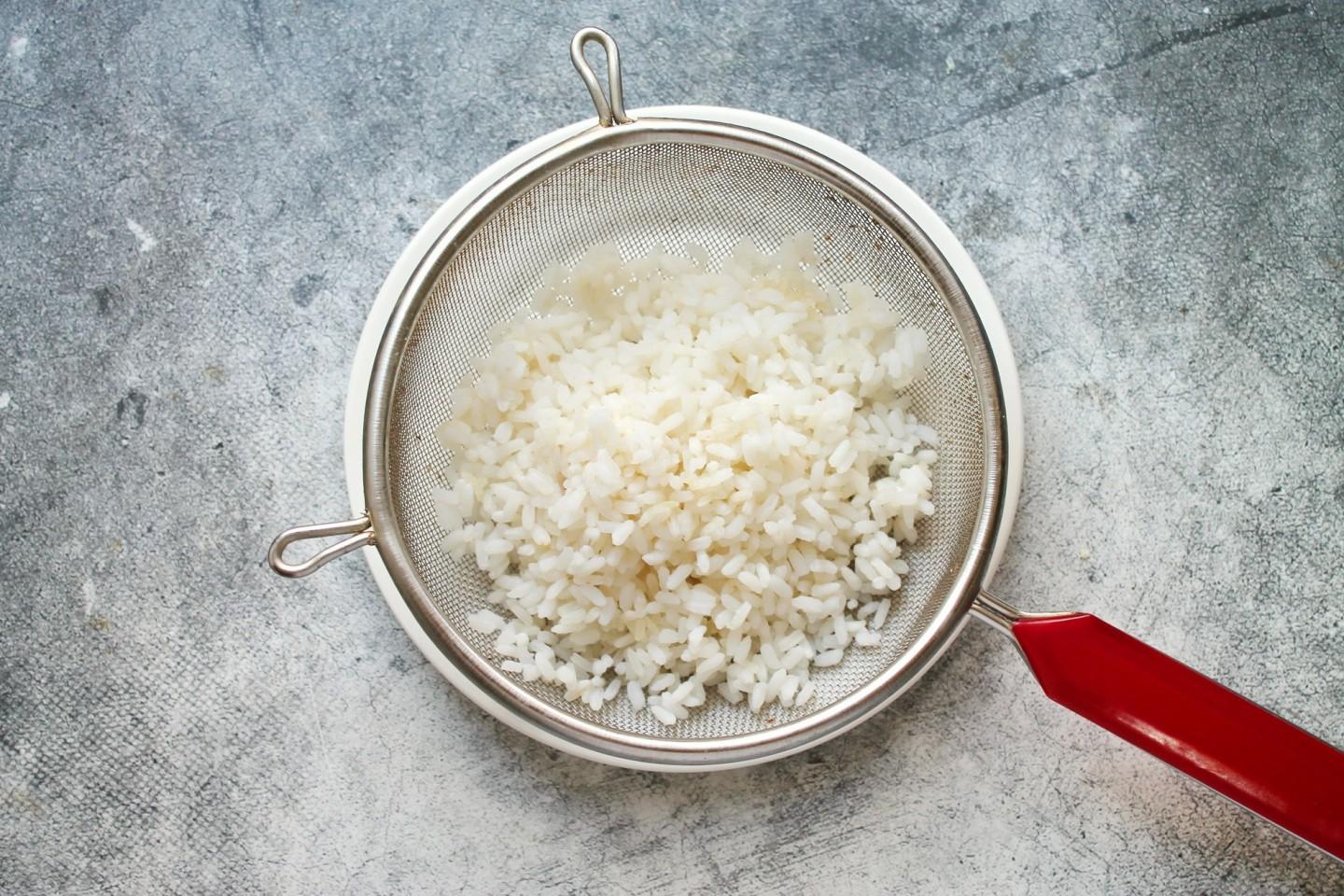Рис промойте в теплой воде и положите в кастрюлю с кипящей, соленой водой. Отварите рис почти до готовности и откиньте на сито, дайте стечь воде. Рис для голубцов можно взять на свое усмотрение, пропаренный рис останется зернышками, а круглозерный будет более разваренный. Какой рис лучше все подойдет можно узнать из статьи о тонкостях выбора и приготовления под шагами.