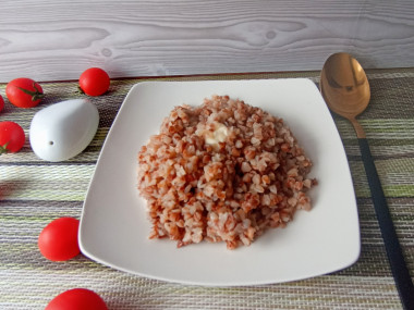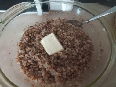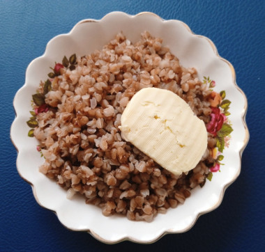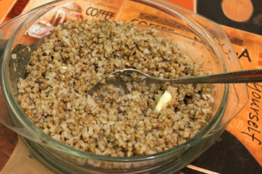 В готовую гречку добавьте сливочное масло и перемешайте.