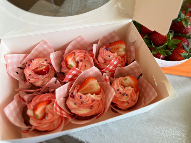 Очень рада, что капкейки получились такими вкусными! 😊 Добавление клубничного конфитюра — это просто отличная идея! Сочетание нежного крема, воздушного бисквита и сладкой ягодной начинки делает десерт еще более изысканным🧁🍓✨