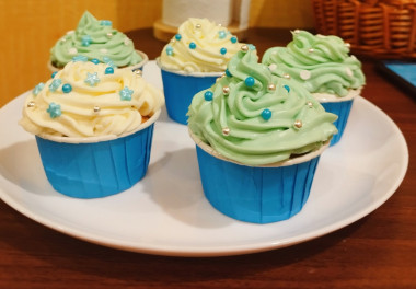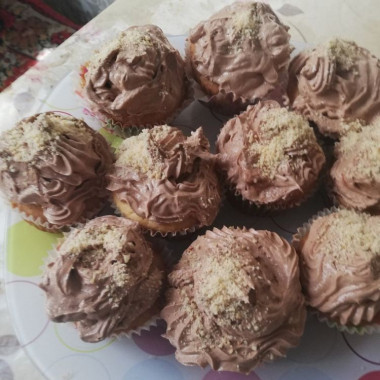 Крем делала рецепту "Тафита". Мои детки его обожают. Сверху капкейки посыпала тертым грецким орехом. В следующий раз попробую с кремом, как у автора. Капкейки понравились, рецепт хороший. Рекомендую!