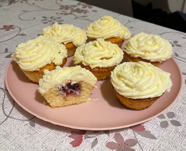Чудеснейшие капкейки! Сама основа мягкая, нежная, с легким ванильным ароматом. Крем сливочный, но не жирный, с характерной сырной ноткой. Очень вкусно!