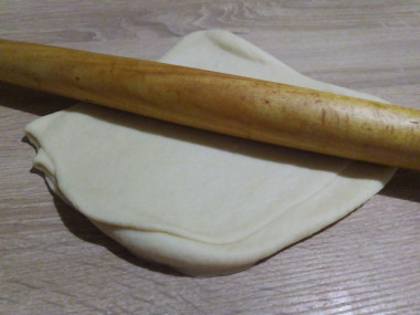 Раскатайте тесто скалкой в максимально тонкий пласт. В принципе, тесто у меня без особых усилий отличало от поверхности, но можно перестраховаться и припылить ее мукой или смазать каплей подсолнечного масла.