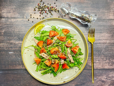 Сытно и вкусно! Спасибо! Салат из говядины, рукколы с помидорами есть еще в таком варианте.