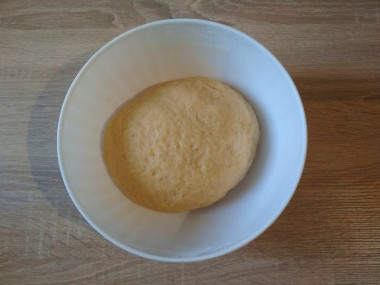6. Из теста сформируйте шар, положите его на дно миски, накройте миску полотенцем. Оставьте на 30 минут.