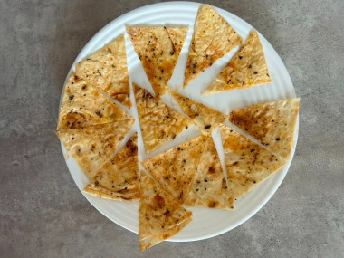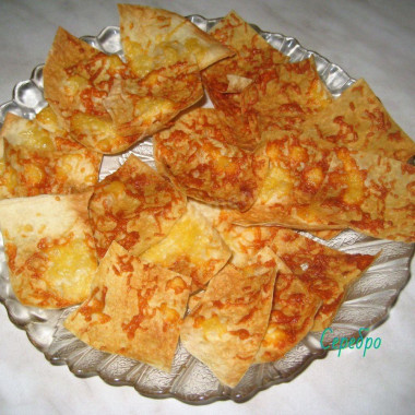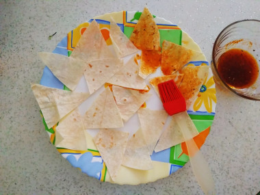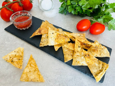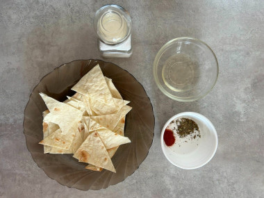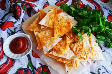 Впервые решила приготовить чипсы из лаваша в микроволновке. Тонкий лаваш нарезала на треугольнички. Растительное масло смешала с солью, паприкой и сушеным базиликом. Кисточкой смазала треугольнички лаваша с двух сторон. Сыр решила не добавлять. Отправила в микроволновку на 3 минуты. Такой рецепт быстрой и вкусной закуски пришелся мне по душе. Спасибо автору за рецепт.