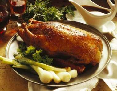 Духовку разогрейте до 240 градусов и выпекайте в ней утку полтора часа под крышкой и еще минут 10-15 в открытом виде, чтобы подрумянилась. Веселых и вкусных праздников!