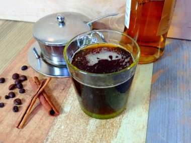 Кофе я сварила в кофеварке. Корицу и сахар добавила уже в готовый кофе. Коньяк у меня не особо получилось поджечь, пламя от спички немного вспыхнуло, но тут же потухло.
