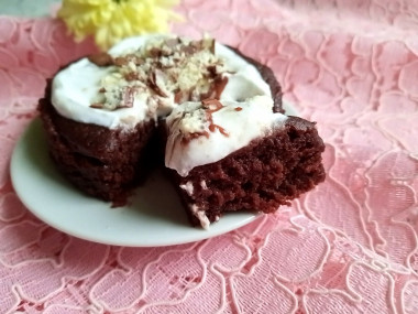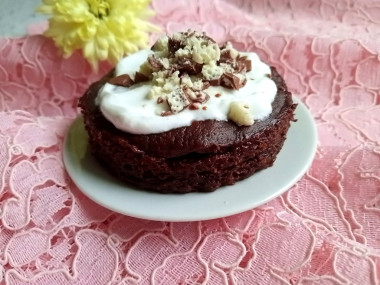 Люблю я различные быстрые кексы в кружке. Увидела на сайте рецепт шоколадного кекса в микроволновке без яиц и сразу же его приготовила. Тесто замешивала в миске с помощью венчика. Муку и какао брала без горки. Молоко использовала топленое. Кроме указанных ингредиентов добавила пару крупинок морской соли. По консистенции тесто похоже на шоколадную сметану. Запекала кексик в своей проверенной керамической кружке. Предварительно смазала ее изнутри растительным маслом. Максимальная мощность моей микроволновки 750 Вт. Время выставила 4 минуты. После окончания программы проверила зубочисткой на готовность. Осталось только вынуть кекс из кружки и украсить. У меня получился очень шоколадный мини тортик. Он вкусный, не приторный, структура пушистая, пористая. Хороший рецепт, буду пользоваться.