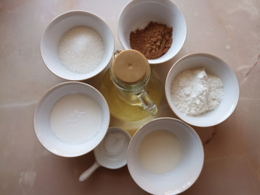 Калорийность продуктов: Какао, Растительное масло, Сахар, Сметана, Молоко, Пшеничная мука, Разрыхлитель