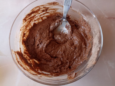 Хорошо перемешайте тесто, должна получиться чуть густоватая масса.