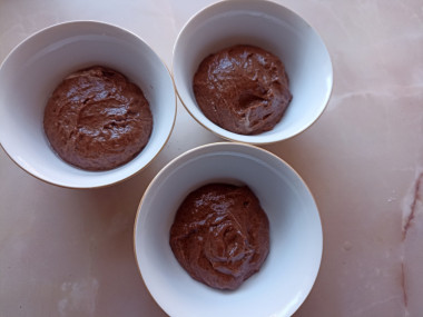 Испекла кекс без яиц в микроволновке в кружке. Я сначала перемешала сухие ингредиенты (сахар, какао, просеянную с разрыхлителем муку, щепотку соли), к ним добавила молоко, сметану и растительное масло, хорошо вымешала. Из этого количества ингредиентов тесто получилось нужной консистенции. Разделила его на три маленькие пиалки. Выпекала на максимальной мощности ( у меня 800 Вт) 4 минуты. После выпекания оставила кексы в микроволновке на 10 минут. Они отлично пропеклись, получились нежные, воздушные, в меру влажные, с чудесным шоколадным ароматом. Очень вкусно с чаем или с молоком.Спасибо автору за рецепт!
