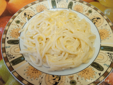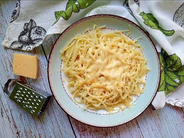 Мне нужна была всего-навсего одна порция спагетти, поэтому решила воспользоваться микроволновкой. Не смогла сразу угадать нужное количество воды, пришлось через 5 минут доливать кипяток из чайника. С сыром получилось вкусно, рецепт нехлопотный, спасибо автору.