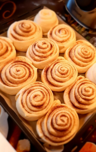 Искала в интернете рецепт булочек "из ничего", когда дома не было молока и сливочного масла, остановилась именно на этом, т.к. подкупила куча лайков, и не пожалела. Сейчас пеку по этому рецепту постоянно. Замешиваю тесто в хлебопечке, всё получается идеально.Тесто смазываю маргарином и посыпаю смесью корицы и сахара. Без заморочек, дёшево и очень вкусно! Спасибо за суперский рецепт!