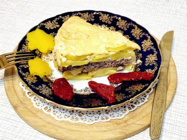 На просторах сайта нашла рецепт картошки с фаршем в мультиварке слоями и решила сразу его приготовить на ужин. Приготовила на 6 порций, все ингредиенты взяла в количестве предложенные автором, прованские травы заменила на универсальную приправу для вторых блюд. По совету Марии в фарш заранее положила мелко нашинкованный репчатый лук. Готовила на режиме "выпечка" 1 час. Верхний слой сметанной заливки, не дал сыру протечь внутрь блюда. Была крайне удивлена запеченным слоем сыра после приготовления блюда. Получился очень красивый и вкусный ужин!