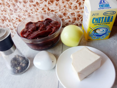 Заинтересовал рецепт паштета из куриной печени в мультиварке. Времени на приготовление ушло совсем немного. Пока обжаривался лук, измельчила блендером печень. Затем добавила к печени обжаренный и протушенный со сметаной лук ( сметану взяла 20