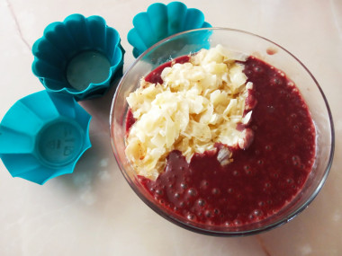 8. Любые небольшие силиконовые формочки заполнить смесью из блендера.