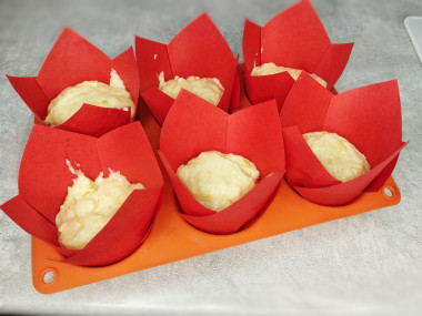 4. Формочки для кексов заполняем тестом на 2/3 и 30 минут выпекаем в разогретой до 160 градусов духовке.