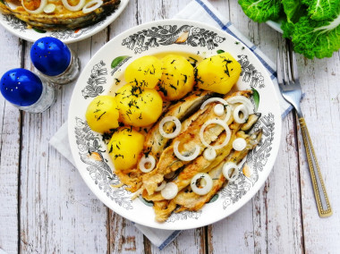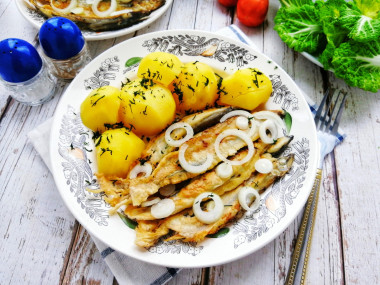 На сковородке мойва быстро зарумянилась. Корочка из теста получилась хрустящая и очень аппетитная. С горячей картошечкой вышло очень вкусно! Съели рыбку с большим удовольствием!