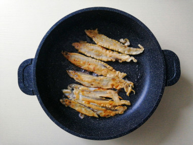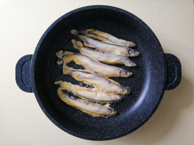 После этого осталось только пожарить мойву, предварительно обмакнув каждую рыбку в кляр.