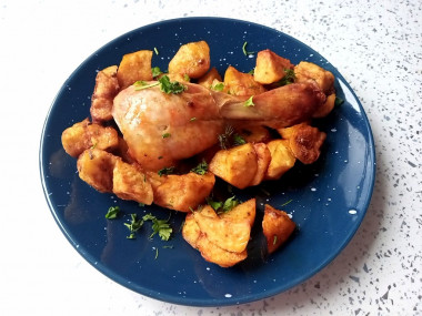 Мне нужно было быстренько приготовить ужин для мужа. На любимим сайте сразу же нашлось решение. Приготовила курицу с картошкой в микроволновке. Раньше думала, что мясо в микроволновке не пропечется, но нет, курочка полностью приготовилась. Для маринада я взяла кетчуп и много чеснока. Аджика тоже была, но я не смогла открыть банку) Для картошки взяла паприку и приправу для курицы. Запекала в микроволновке 18 минут при 750 Вт. И картошка, и курочка получились румяными, чего я не ожидала. Все прекрасно приготовилось. Блюдо вкусное, острое и быстрое в приготовлении. Возьму на заметку этот рецепт.