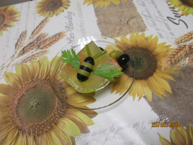 Холодец из курицы .Во рту уже стало вкусно. Я так люблю это произведение искусства. Все просто: достаточно все сделать по рецепту плюс немного фантазии. Украсить куриный холодец с желатином можно кистью "винограда" из маслин с петрушкой, а подать кусочек холодца с пчелкой из маслины и оливки. Готовьте холодец по рецепту-не пожалеете!
