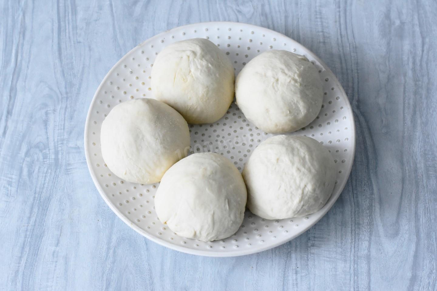 Тесто разделите на 5-6 равных частей. Каждую часть скатайте в ровный шарик.